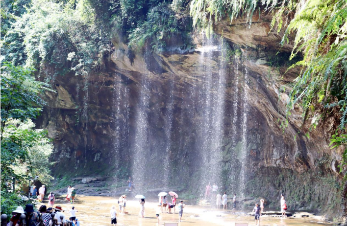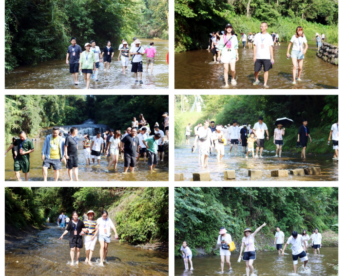 團(tuán)隊(duì)成員一行從觀沱下渡下船后,經(jīng)過1公里山間林蔭小道,開啟長略7公里的“中國最長石板河”踩水體驗(yàn):大家欣然下水后發(fā)現(xiàn),石板河一石沉底,托起淺淺清流,或急速、或緩流、徐徐下行、人水合一、動(dòng)態(tài)接觸,讓人全新體驗(yàn)感十足;兩岸奇峰夾峙、林木森森,成就天下石板河之絕唱。大家先后經(jīng)過一碗水、一顆松、碧水長灘、響灘子瀑布、出谷食坊、水簾飛虹、水舞山間、戲水戰(zhàn)場等景點(diǎn),在溯溪戲水的樂園、避暑游樂的天堂中,讓人縱情山水,盡享水趣。然后,乘坐體驗(yàn)飛天魔毯穿越叢山峻嶺之間,遙望七彩玻璃水滑道的蜿蜒飛馳,感受大自然鬼斧神工和天下穹隆的瑰麗之美。